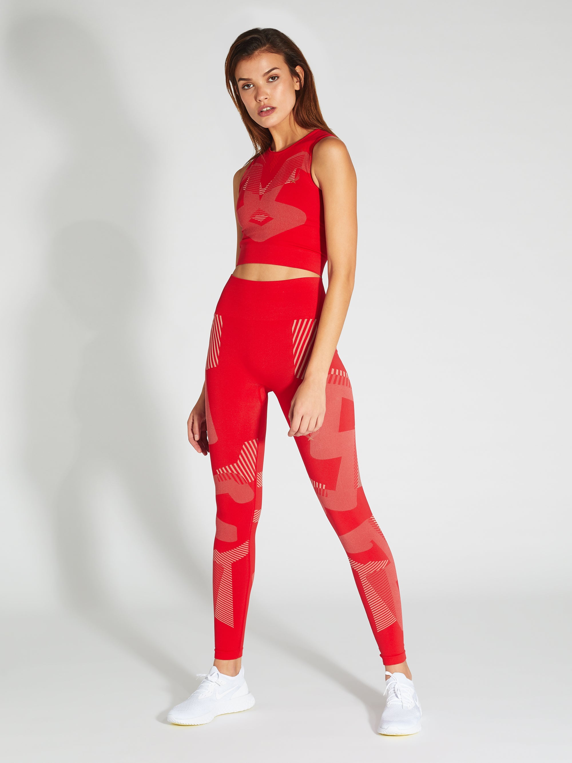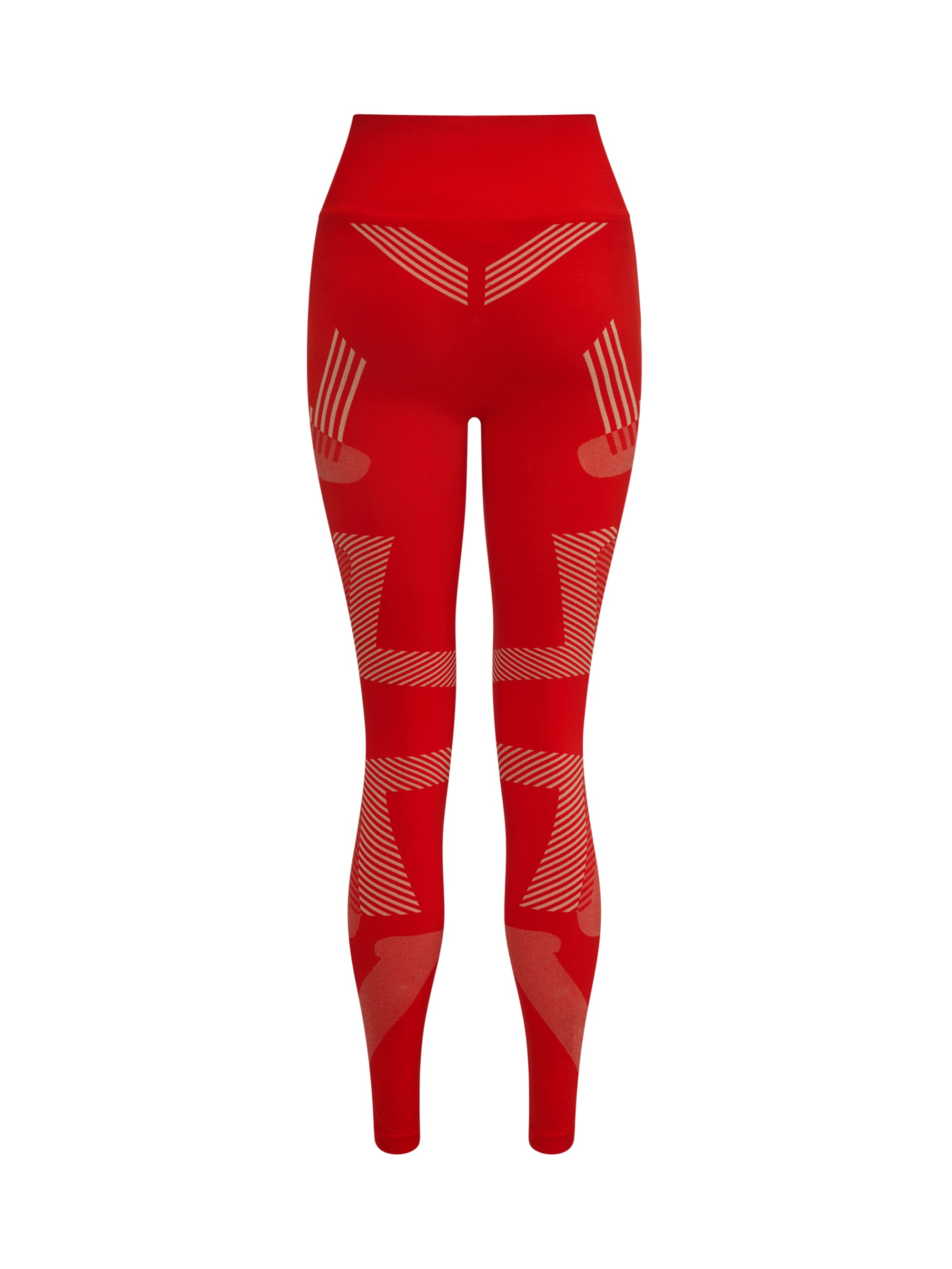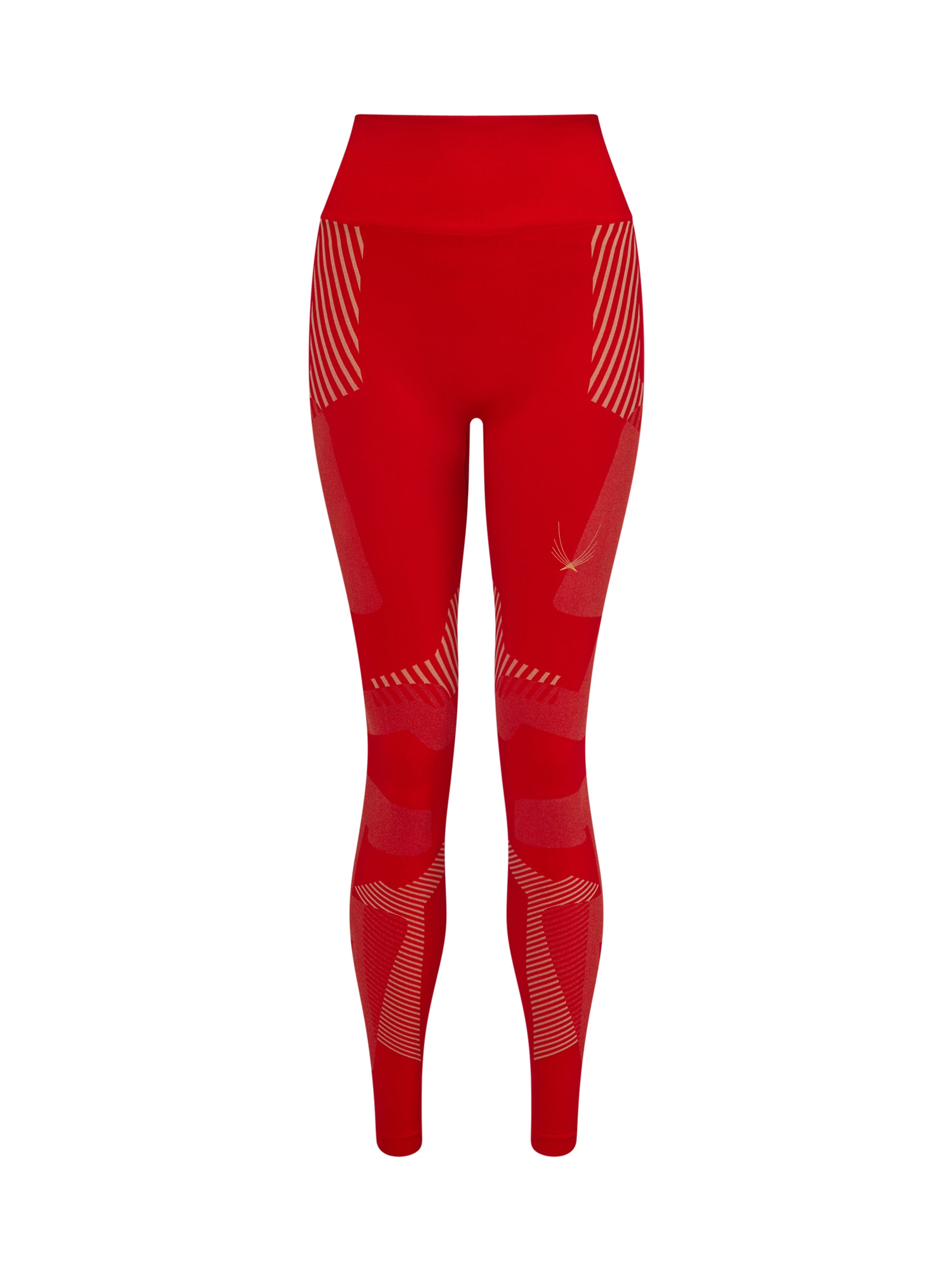 High-waisted full length red Technical Knit Leggings crafted from seamless circular knit fabric.