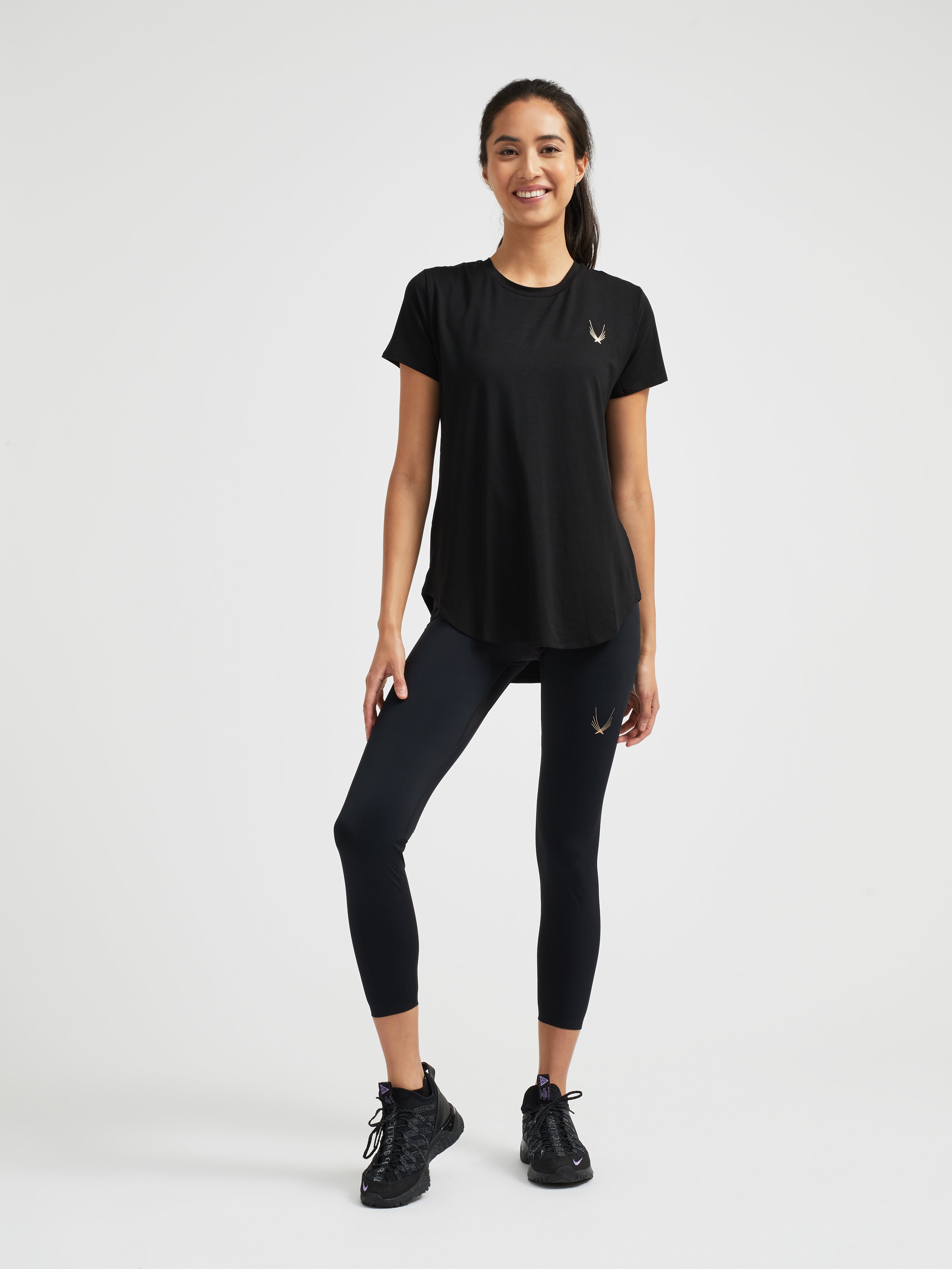 Now available in black, the new T-shirt shape in soft touch fabric and designed for a loose, full coverage fit. The Kubrick T-shirt's lightweight feel creates a delicate drape that flatters the body. At the back, Technical taping frames the breathable mesh paneling. A great layering piece.