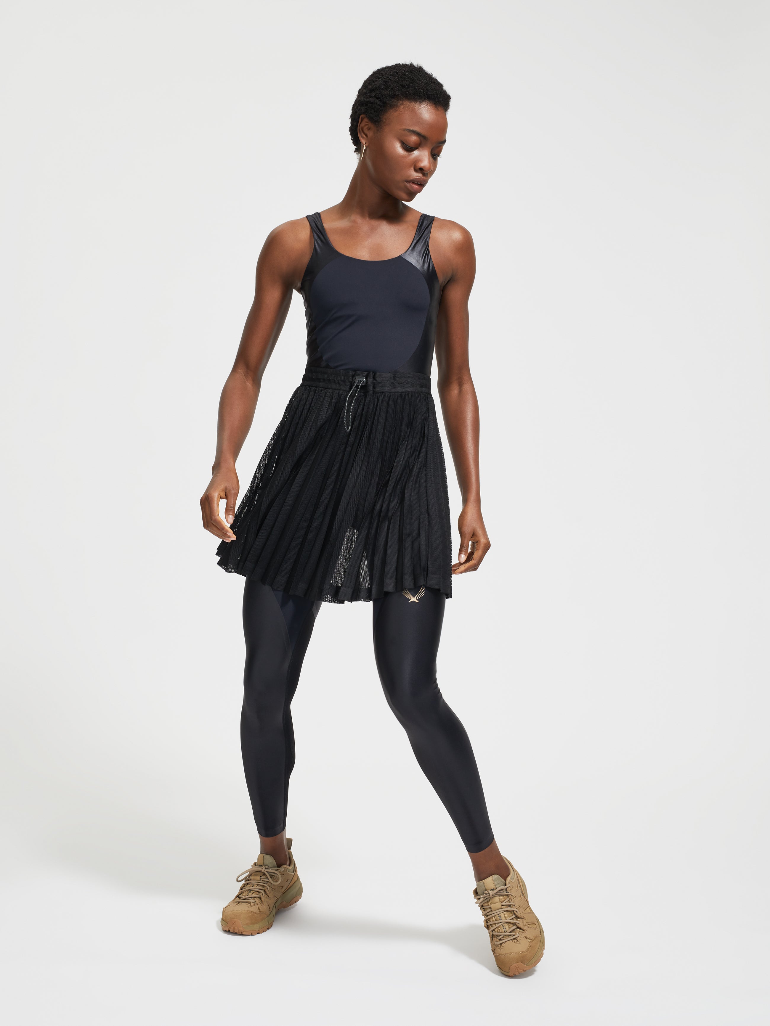 The Mini Pivot skirt is the perfect light-weight summer cover-up designed to be worn over our technical knit hotties, long leggings or one piece either at the gym or to take you to and from. Available in limited numbers the Mini Pivot Skirt is a short mesh layering skirt, with a drawstring waistband to secure your perfect fit. MAIN: 100% Polyester
