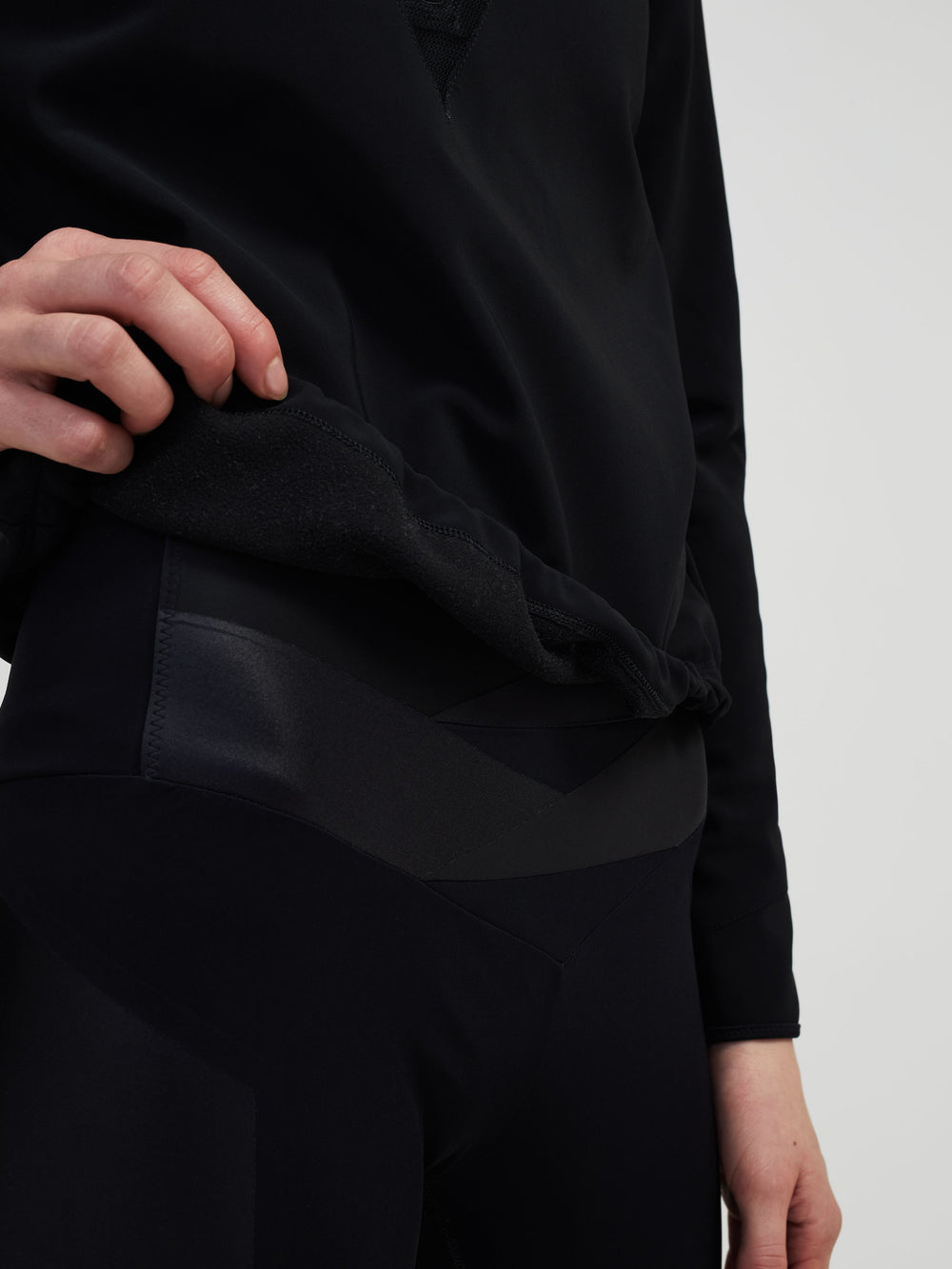 The Technical Jumper is the perfect layer for outdoor running or cycling in cooler months. The jumper has a fleece lining and wind shield exterior whilst moisture wicking and thermo regulating. High visibility piping outlines mesh ventilation panels at the shoulder and under the arm which maintain air flow. Adjust the hem toggle for a straight or bagged over hem. Key pocket at the back.