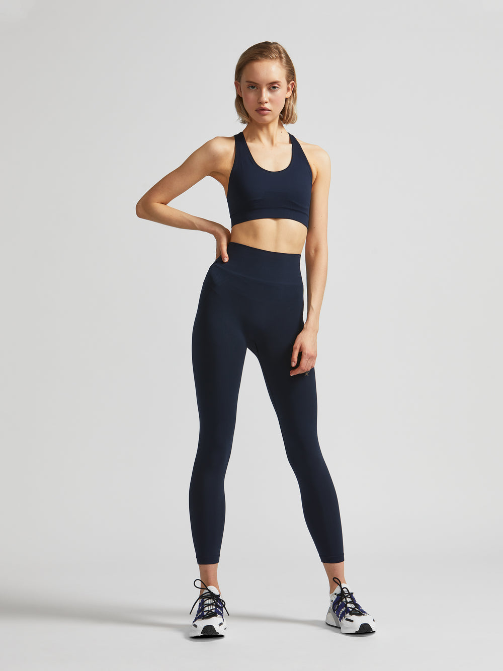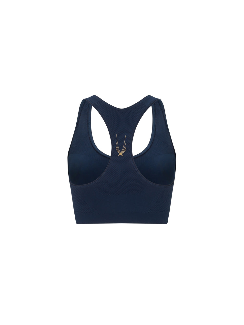 Slightly darker than marine, this super soft navy Technical Knit Sports Bra (without removable bra cups) with a scoop front neckline and racer back finish. Features ventilation mesh panels at the under bust and back chest, with added support of compression knit lining to give you support where you need it. Suitable for low to medium impact activities. Made from 94% Polyamide 6% Elastane.