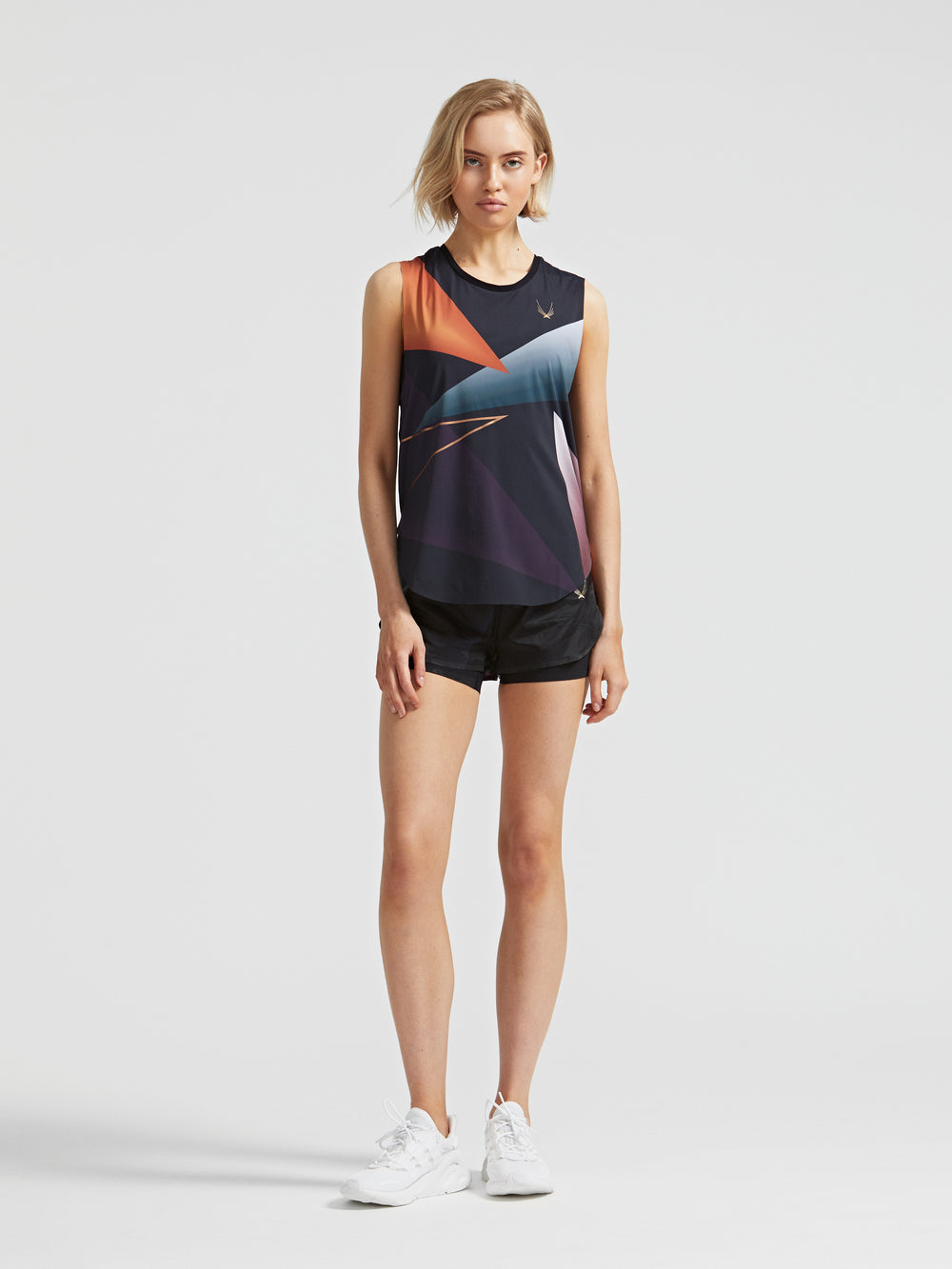 Limited offering of the Tilt Running Tank in the Sierra print featuring a limited edition design and metallic copper taping. There is a full back mesh panel for breathability. Made from 73% Polyamide, 27% Elastane.
