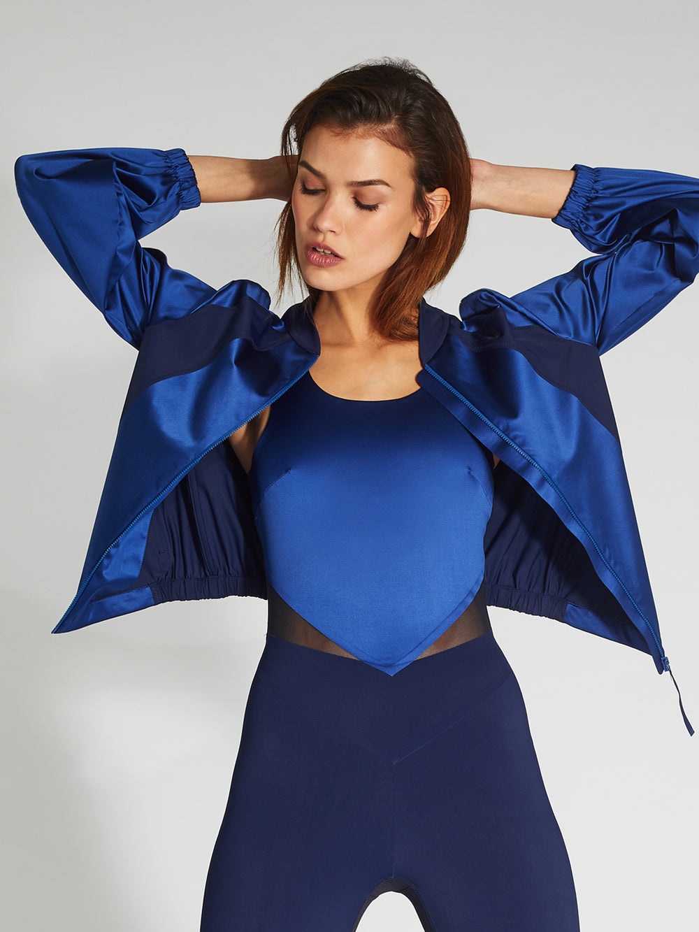 The Satin Bomber Jacket is the ultimate transitional style, made from luxurious and eye catching performance stretch satin fabric. Inspired by the satin silks used in Boxing and Jockey uniforms, this jacket merges the classic bomber look with high performance detailing. Features reflective back strips for visibility and elasticated hem and sleeves for comfort. Main Satin: 87% Polyamide, 13% Elastane. Matte: 59% Polyamide, 41% Elastane.